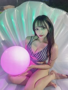 【水着スナップ@ナイトプール】シェルフロートで写真を撮れば、気分はプリンセス♡