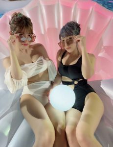 【水着スナップ@ナイトプール】トレンド水着×サングラスが洒落見え!