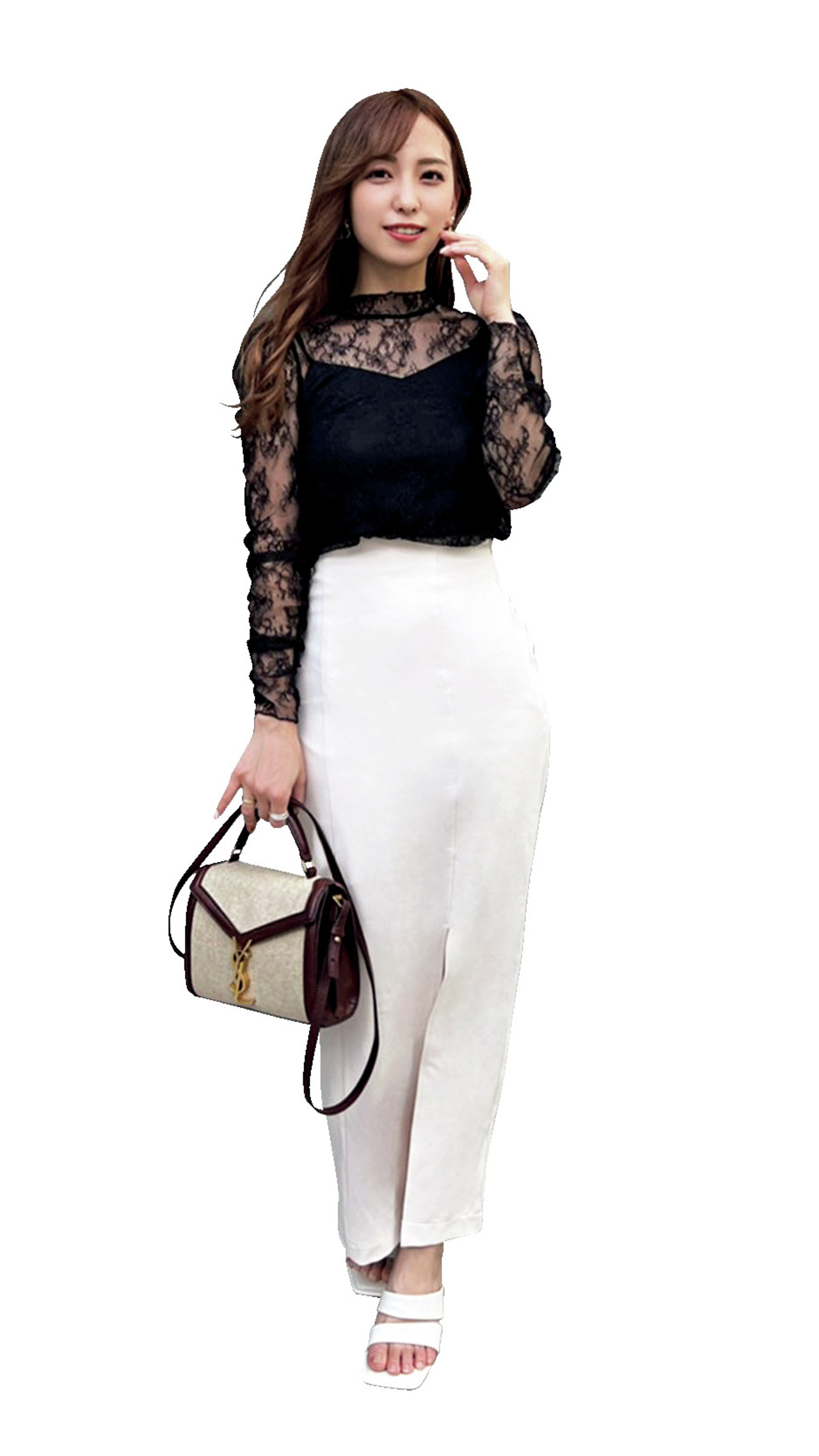 「渋谷勤務ですが、クライアントとの会食で、月2回ほど来ます。今日は、甘すぎない黒レースで大人っぽく」