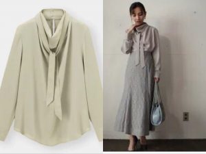 ドレープネック×ボウタイの技ありブラウスコーデ