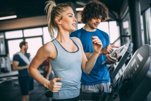 • Beautiful,Girl,Running,On,A,Treadmill,In,Health,Club.
