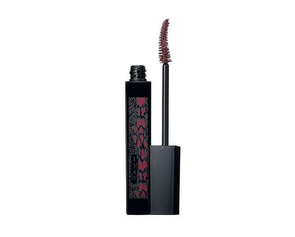 マスカラもアイシャドウの色に合わせてbのピンク系を。上下まつげにたっぷり塗り、目元をピンクワントーンに。cの上下を混ぜて頬の内側に楕円形にふわっと広げて。ベージュカラーのdを唇全体に塗り、大人っぽい印象に。