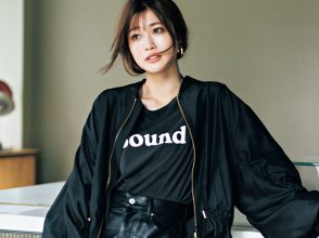 ブルゾン¥24,200(glamb Tokyo<LAYMEE>)、タンクトップ¥2,090(BONJOUR SAGAN)、スカート¥22,000(TOMORROWLAND<BACCA>)、バッグ¥9,900(リゼクシー)、靴¥25,300(S&T<SAYE>)、ネックレス¥7,020(アビステ)