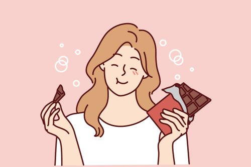 「生理前はイライラするから、甘いものを食べてもいい時期」にしがちですが、できればこの時期は血糖値を上げ下げしない低GI値の食品を摂ることを心がけましょう。「どうしてもお腹が空いて甘いものが食べたい…」というときは、干し芋、ハイカカオチョコレート、市販の大豆バーなど、低GI値のおやつを選んで。特にハイカカオチョコレートは鉄分も多く含まれるため、食べ過ぎには注意しながら、上手に取り入れましょう。