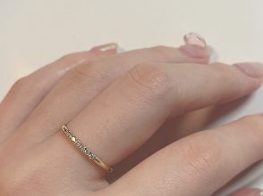 「ずっと気になっていた”パティエラ”のリングをリース中に試着! 華奢なチェーンリングを5本指につけるのがトレンドで、繊細でおしゃれっぽい輝きがポイント♡ シンプルなデザインは手持ちのリングと重ねづけも楽しめます。