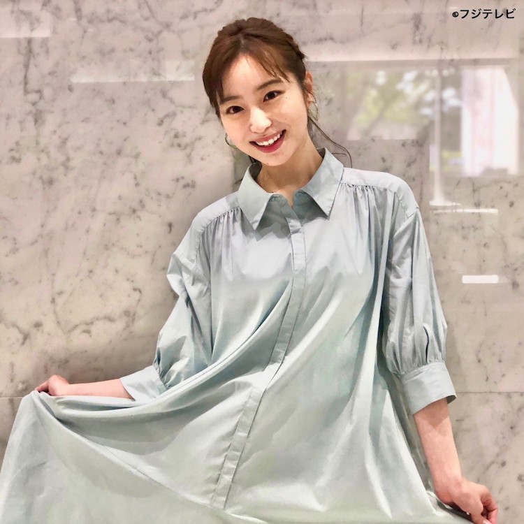 サラリと着るだけで素敵に決まる、ペパーミントのシャツワンピースが清涼感たっぷり♡ ふんわり広がるパフスリーブや、きれいなAラインがさりげない可愛らしさも加えます。エクリュのパンプスで爽やかさをさらに高めて。