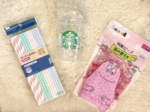• スタバのカップに「ダイソー」の消臭ビーズを入れたら、思いのほか映えた。【100均DIY】