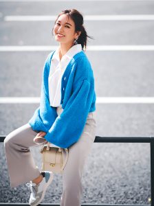 【写真10枚】お天気キャスター・林佑香さんのケーブルニットで柔らかく上品な淡色コーデ【10月23日分】