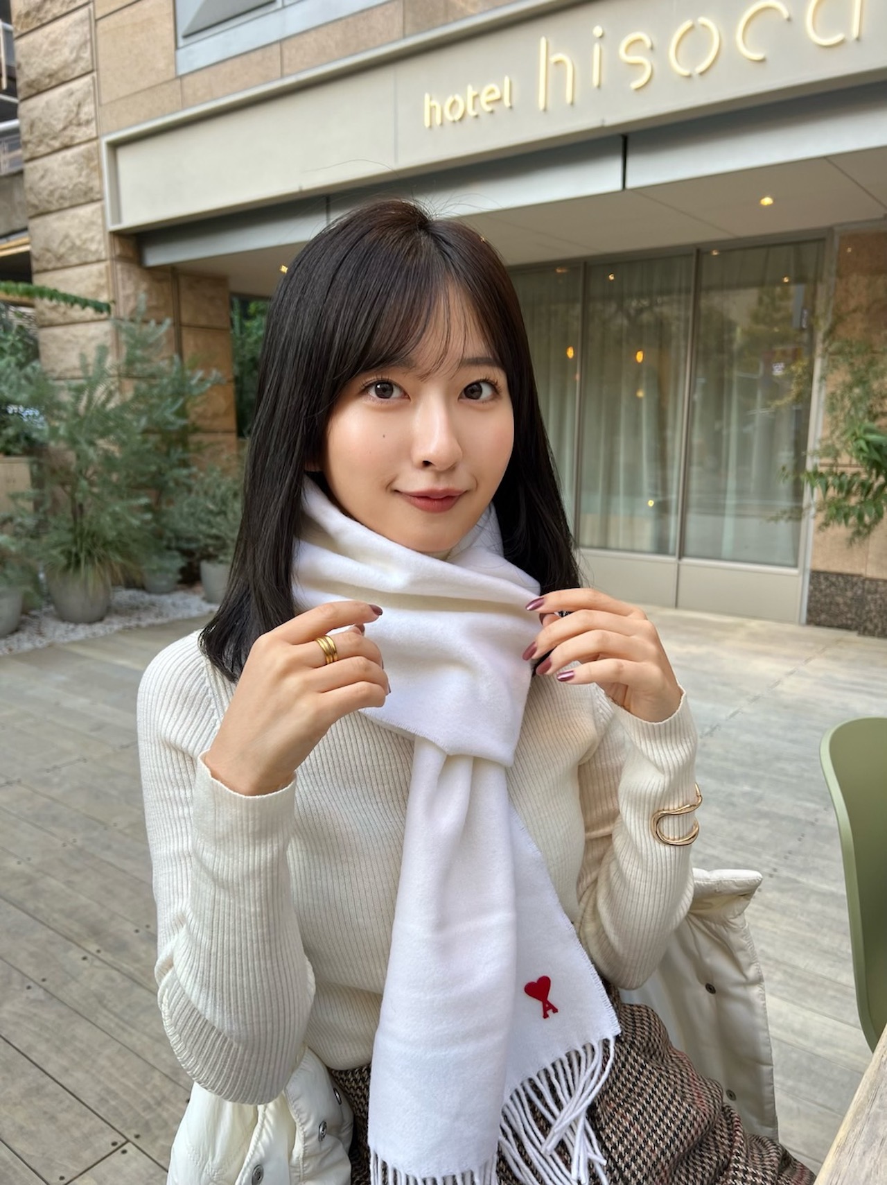 今回は、2022ミス週刊少年マガジンを受賞! CanCam it girlや女優としても活躍中の斉藤里奈さんが登場♡ あったかわいい「AMI PARISのマフラー」をご紹介します♪