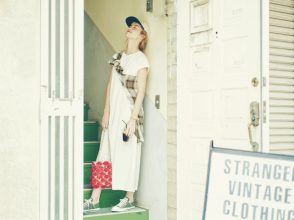 コート¥33,000(ラ トータリテ 有楽町マルイ店<ラ トータリテ>)、ニット[一部店舗限定]¥6,990(Gap新宿フラッグス店<Gap>)、スカート¥8,690(MURUA)、バッグ¥8,690(pinue)、靴¥27,500(ダイアナ 銀座本店<ダイアナ>)、アームウォーマー¥2,530(ROPÉ PICNIC PASSAGE/ジュン)、イヤリング¥4,950(MIKIRI<クードル>)