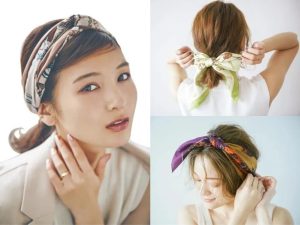 ③おくれ毛を巻き足してから、スカーフをリボン結びにしたら完成!