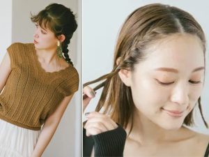 前髪やおくれ毛のひと手間で、こなれたゆるふわヘアの出来上がり。特に湿気の多い日は、ざっくりと三つ編みをしてもかわいい♡