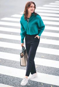 グリーンロゴが効いたプレッピーコーデ!『めざましテレビ』お天気キャスター・林佑香さんの毎日コーデ【10月21日分】