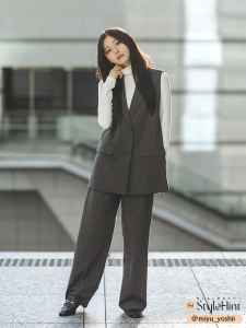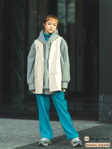 グレーでまとめたおしゃれ上級テク♡めざましお天気キャスター・林佑香さんの毎日コーデ【10月14日分】