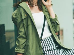 白のチェスターコートをフレームにしてシュッと縦長ラインに