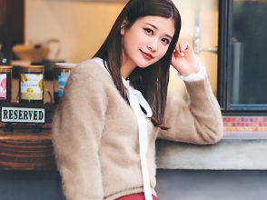 スカート¥6,050(OPAQUE.CLIP)、ブラウス¥25,300(FRAY I.D ルミネ新宿2店<FRAY I.D>)、コート[共布ベルト付き]¥38,500(LAGUNAMOONルミネ新宿)、バッグ¥13,750(RANDEBOO)、靴¥30,800(銀座ワシントン銀座本店<ワシントン>)