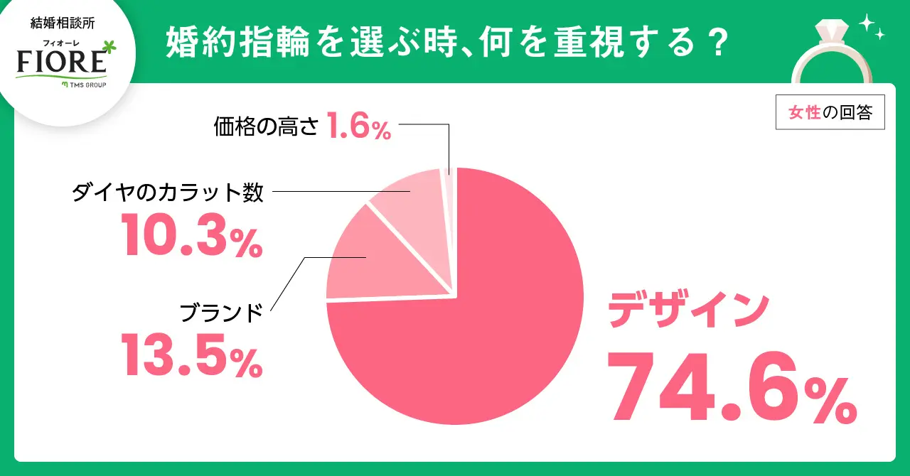 ここでは株式会社TMSホールディングスの結婚相談所フィオーレが婚活中の女性126名を対象に実施した意識調査をもとに、近頃はどのような婚約指輪が求められているのか探っていきたいと思います。