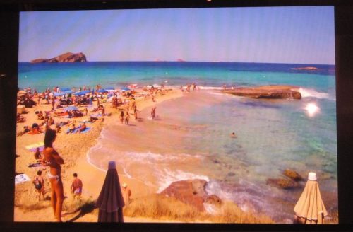 会場のモニターには、サユリさんが撮ったイビサ島の写真のスライドが。