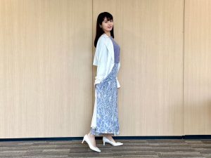 【写真7枚】アンサンブルのワンピースにユニクロのジャケットをON!『めざましテレビ』お天気キャスター・林佑香さんの今日のコーデ【10月24日分】