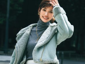 ピンク? それともラベンダー?…ちょうどその中間くらいの、程よい甘さがおしゃれなムードを高めてくれる! 光沢感のあるベロア素材のマーメイドスカートでリッチ見せ。やわらかなワントーンでまとめるのが定石だけど、あえて黒をピリッと効かせて、オールドライラックを“甘く着ない”のが新鮮♪