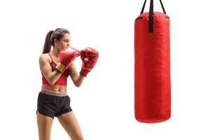 • Strong,Young,Female,Training,Box,With,A,Punching,Bag,Isolated
