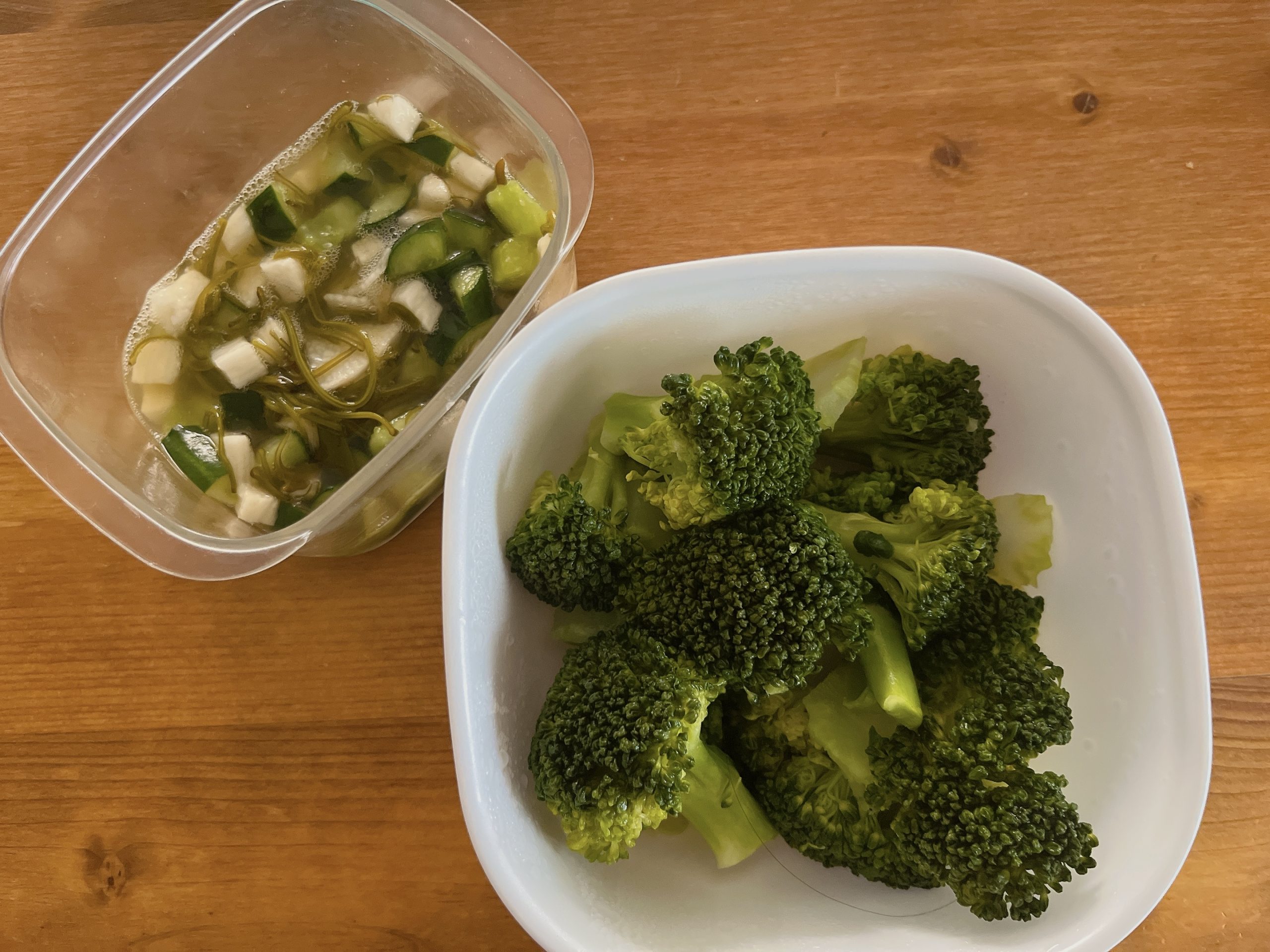 爆食はしつつ、途中から「ブロッコリーと鶏ひき肉」とか、カロリーと脂質50%オフで野菜もどっさり取れる「プライムジャワカレー(神)」で抗い始めました。そしてブロッコリー蒸しと、きゅうりと長芋とめかぶのあえものを大量に作ったので食べてます。野菜と海藻と食物繊維たっぷりとって、調整調整! 抗いたい!