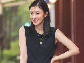 リネン混素材のビスチェ付きセットアップは、着回しのバリエが充実するイチオシアイテム。ハンサムな3点コーデなら、潔くデコルテを出して女っぽく着るのが◎。締め色を黒じゃなくブラウンにするとよりあか抜けた印象に♡