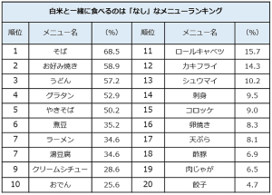 白米と一緒に食べるのは「ナシ」だと思うおかずTOP20発表!2位は「お好み焼き」、1位は…