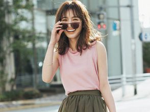 スカート¥23,100(TOMORROWLAND<MACPHEE>)、バッグ¥6,490(アンビリオン<カシュカシュ>)、シャツ¥6,589(FREE’S MART)、靴¥2,530(神戸レタス)、イヤリング¥3,080(mimi33/サンポークリエイト)
