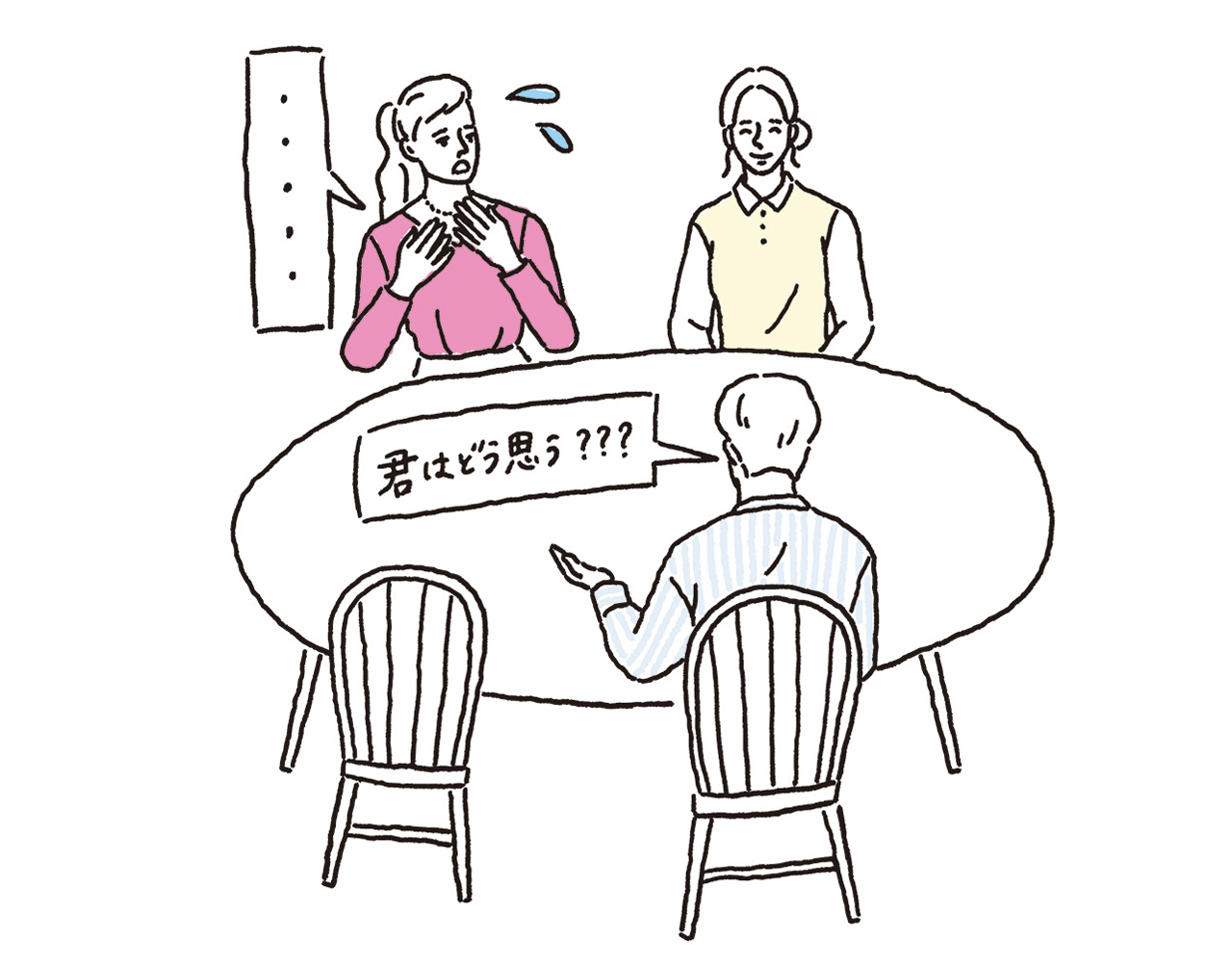 「自分の意見を言う練習は大事。普段からこれは好きとか嫌いとか考えておいたほうがいいわ。みんながBと思っても、あなたがAがいいと思うなら自分を尊重していい。Aと言った上で、みんなの意見に合わせると言えばいいの。意見が言えないと、周りに合わせているつもりがどんどん孤独になっていくわ」