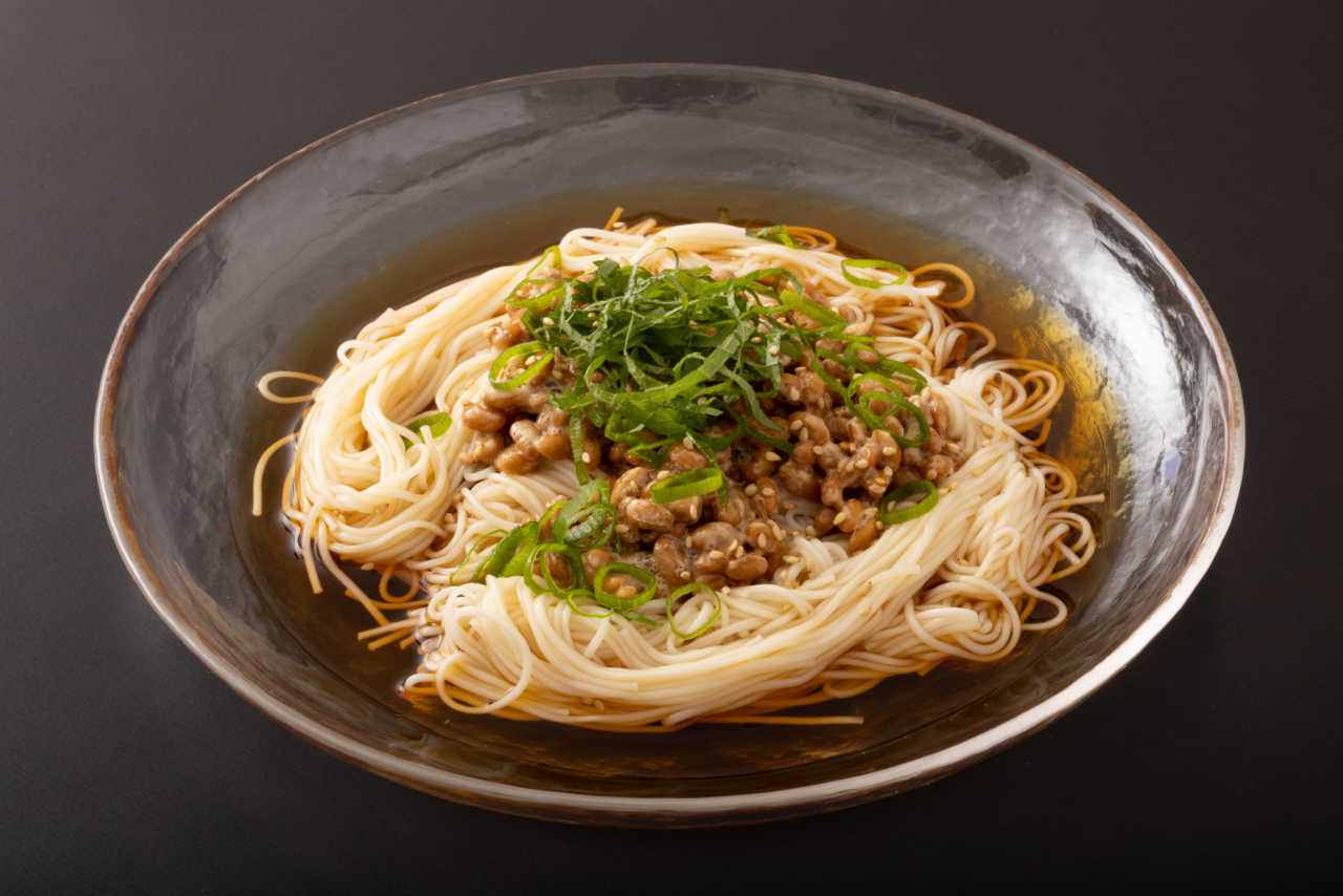 「そうめんの上に納豆をかける、シンプルなメニューです。温泉卵やトマト、ツナなどとも相性が良く栄養価もアップできておすすめです」