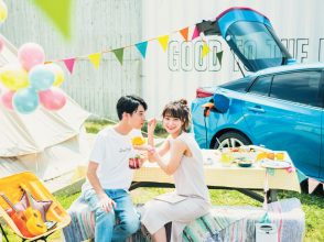 夏空ブルー×ネイビーで品よくかわいい配色に。細かいタックが作るボリューム感がワンランク上のレディムードを演出。トップスはブラウスで大人っぽさを取り入れて。