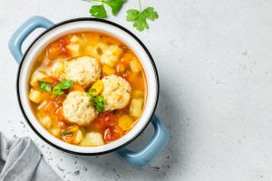 • Homemade,Vegetable,Dietitioan,Meatball,Soup,In,Pot.,Top,View,,Copy