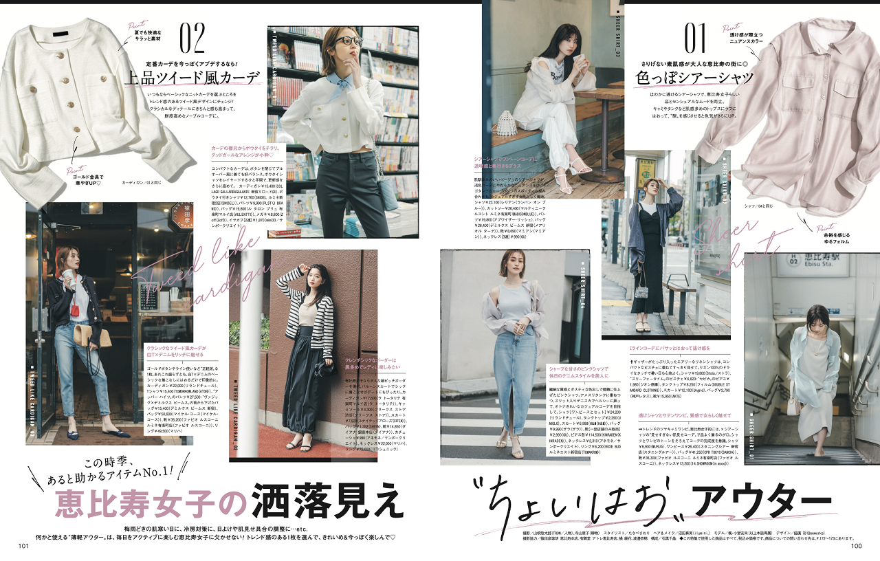 梅雨どきの寒い日に、冷房対策に、日よけや肌みせ具合の調整に…この時季あると助かるアイテムNo.1“薄軽アウター”は、毎日をアクティブに楽しむ恵比寿女子には欠かせない! さりげない透け感が品とセンシュアルなムードを両立させる『色っぽシアーシャツ』や、定番コーデを今っぽくアプデさせる『上品ツイード風カーデ』など、トレンド感のある1枚を選んできれいめ&今っぽく楽しんでみて♡