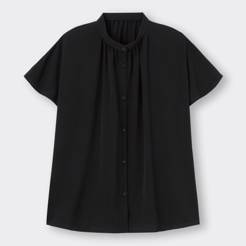スタイリングを選ばないシンプルなバンドカラーシャツ。さらっとした着心地で、胸元のギャザーとフレア感のある袖がポイントに。きれいめなスカートやパンツと合わせてお仕事コーデに、デニムと合わせて普段着としても着回せる高コスパアイテムです♪