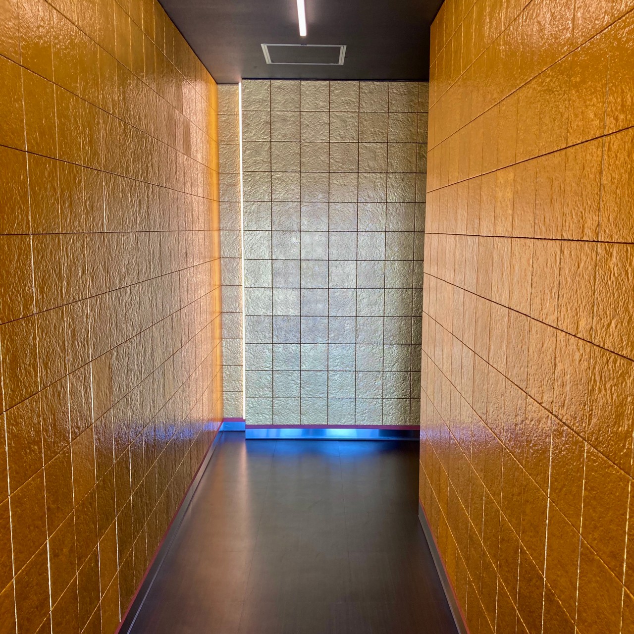 トイレの壁には3,000枚の金箔タイルが貼られています。異空間…!