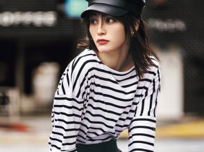 [楓]シャツ¥27,500(ルシェルブルー<LE CIEL BLEU>)、中に着たキャミソール¥2,970(archives)、パンツ¥20,900(マルティニーク ルコント ルミネ有楽町<martinique>)、バッグ¥9,900(SMIRNASLI)、靴¥38,500(ハーモニープロダクツ オンラインストア<ファビオ ルスコーニ>)、ピアス¥11,000(ステラハリウッド)