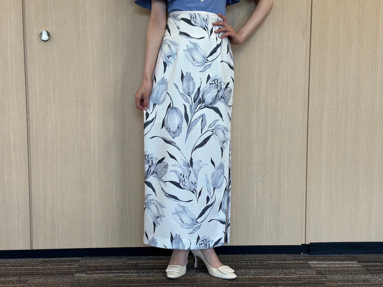 ■6/21(水)/ブルーシャツ×チューリップ柄タイトスカート