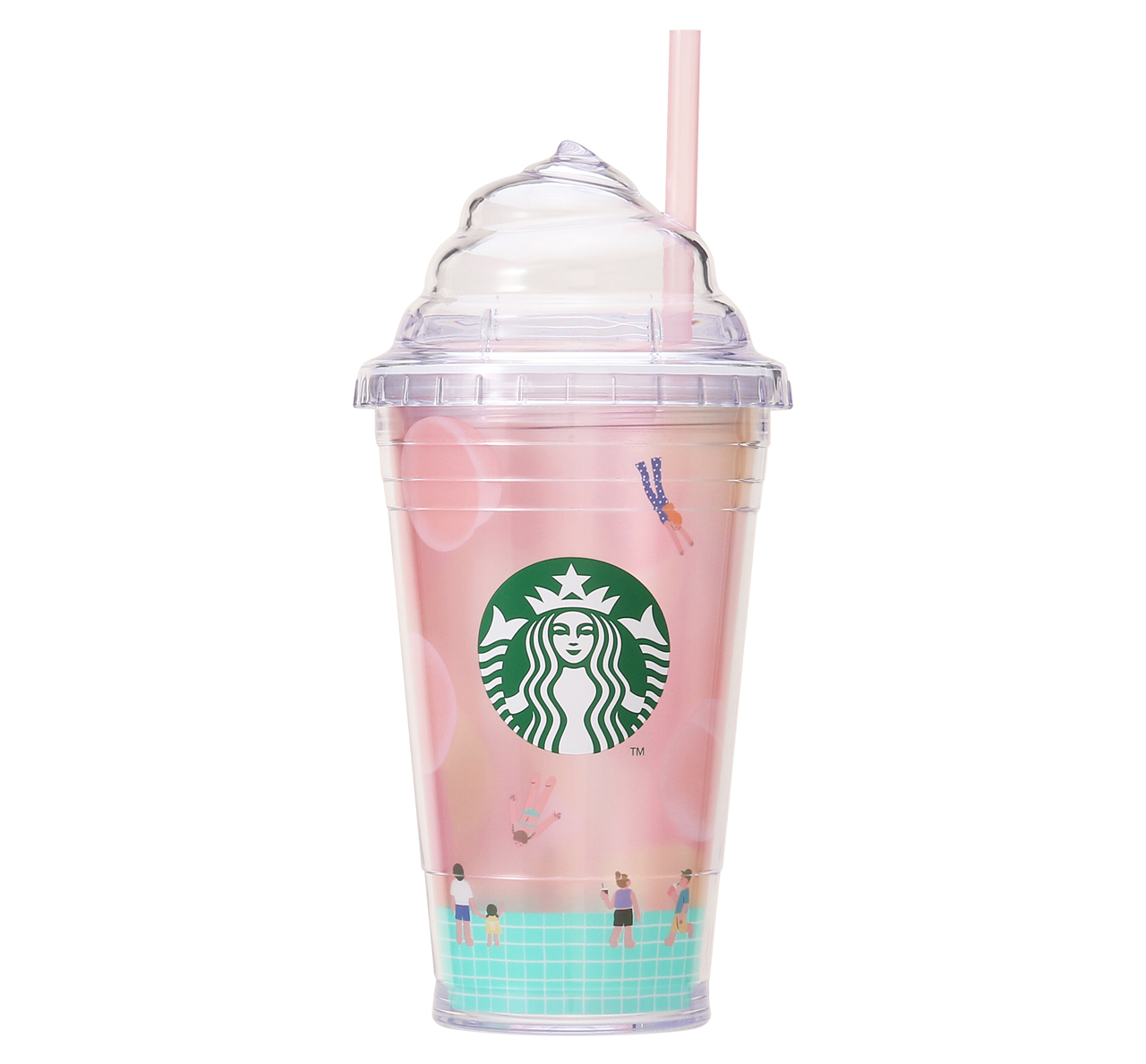 ホイップをイメージした蓋が目を引くタンブラーが登場! ピーチをメインにプールの中をゆらゆら泳ぐような人々を描いた遊び心のあるデザインがかわいいから、お気に入りのドリンクをたっぷり注いで♡