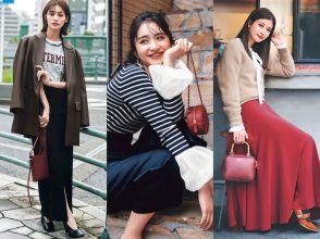 肌なじみのいいコーラルピンクのシャツ+キャミに、クリーミィなパンツを投入。血色がよく見えるコーラルピンクのタンクとシアーシャツを重ねることで表情も明るく見えます。ピンク以外はまろやかなホワイトデニムとベージュ小物で軽やかに着こなして。