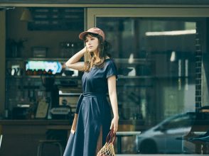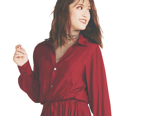 ワンピース¥20,900(FRAY I.D ルミネ新宿2店<FRAY I.D>)、共布ベルト付きジレ¥11,990(ユナイテッドアローズ<CITEN>)、バッグ¥34,540(デミルクス ビームス 新宿<ジャンニ ノターロ>)、靴¥6,500(ダブルエー<オリエンタルトラフィック>)、ヘアカフ¥2,200(ROSE BUD ルミネエスト新宿店<ROSE BUD>)、ピアス¥2,970(フィービィー)、バングル¥296,000(KINRADEN<KINRADEN>)、リング¥71,500(14 SHOWROOM<anapnoe>)