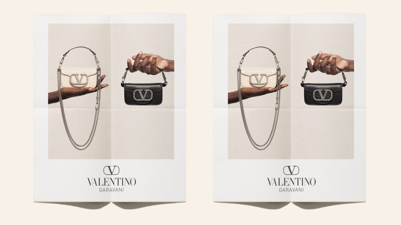 新登場したマイクロサイズのチェーンバッグは、希少価値の高いカーフスキンが使われていて、触り心地のよさや軽さも魅力。高級感のあるシンプルなデザインに、スワロフスキークリスタルであしらわれているヴァレンティノのシグネチャー「Vロゴ」が宝石のように輝いて、ラグジュアリーかつ大人ムードが漂います。
