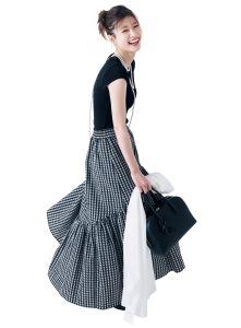 • シンプルなのにコケティッシュな存在感♡リブT×ゆるスカートで作るモノトーンコーデ【今日のコーデ】
