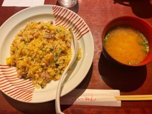 れんげでひと口すくって口に入れると、優しい味が広がり、納豆や細かく切られたチャーシューやネギ、たまご、全ての具材がパラパラの米からほぐれ、自分の役割を全うし周りを生かし、最強の作品ができあがる。