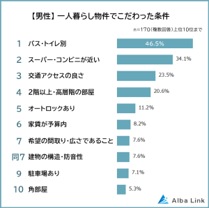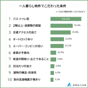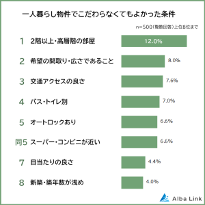 • ひとり暮らしの部屋探しで「実は妥協してもよかった条件」2位は部屋の広さ。1位は?