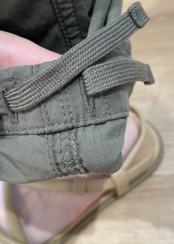 「ウエストと裾を紐で調節できる安心感や、程よくワイドで締め付けがなく、5本のカーゴパンツの中でいちばん動きやすかったです。ややハイウエスト×サイドのポケットが高めに設定してあるのも、腰高(脚長)に見える気がしてスタイルアップ効果が高いな、と思いました。今年っぽいシャカ素材や絶妙なカーキ色もおしゃれだし、きれいめコーデのハズしとしても使えそう。着回しの妄想も膨らみました」
