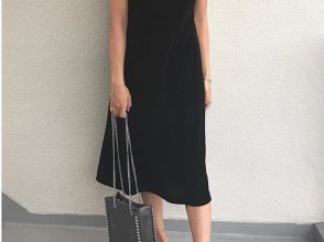 シアー素材のミントシャツから透けて見えるワンピのブラウンが、溶け合うチョコミントアイスのよう。シンプルなキャミワンピには遊びゴコロたっぷりなビーズバッグや長めのペンダントが映える!