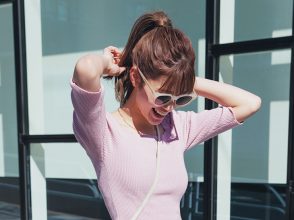胸下位置で、短丈シャツとタイトニットワンピがドッキング。白シャツは、背中のリボンやフロントボタンの開閉で肌見せ具合を調節できる。ボタンを全開にしつつ抜き襟で着ると、肩やデコルテがのぞいて、色っぽニュアンスが生まれる♡