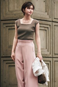 • ピンク×ブラウンでしっとり華やぐ♡通勤パンツスタイル【今日のコーデ】