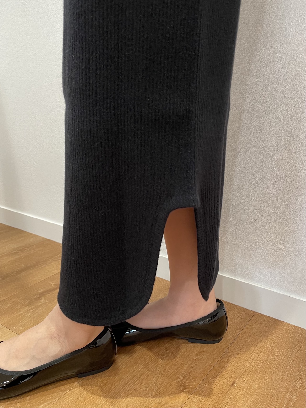 見た目はかなりタイトですが、はいてみると想像するよりはるかに楽ちん! 伸縮性があるし、両サイドにスリットが入っていて歩きやすいのもうれしい。黒×ニット素材で、きれいめにもカジュアルにも着られるから、仕事も遊びもシーン問わず着回せそう。by里奈